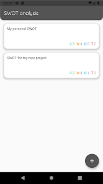 Ta aplikacja pomoże Ci stworzyć swoją analizę SWOT za pomocą prostego, czystego interfejsu. Pozwala ona na tworzenie tylu SWOT, ile chcesz, z każdym związany z konkretnym systemem do analizy. Możesz również robić notatki dla każdego systemu i zapisywać swoje mocne strony, słabości, szanse i zagrożenia.